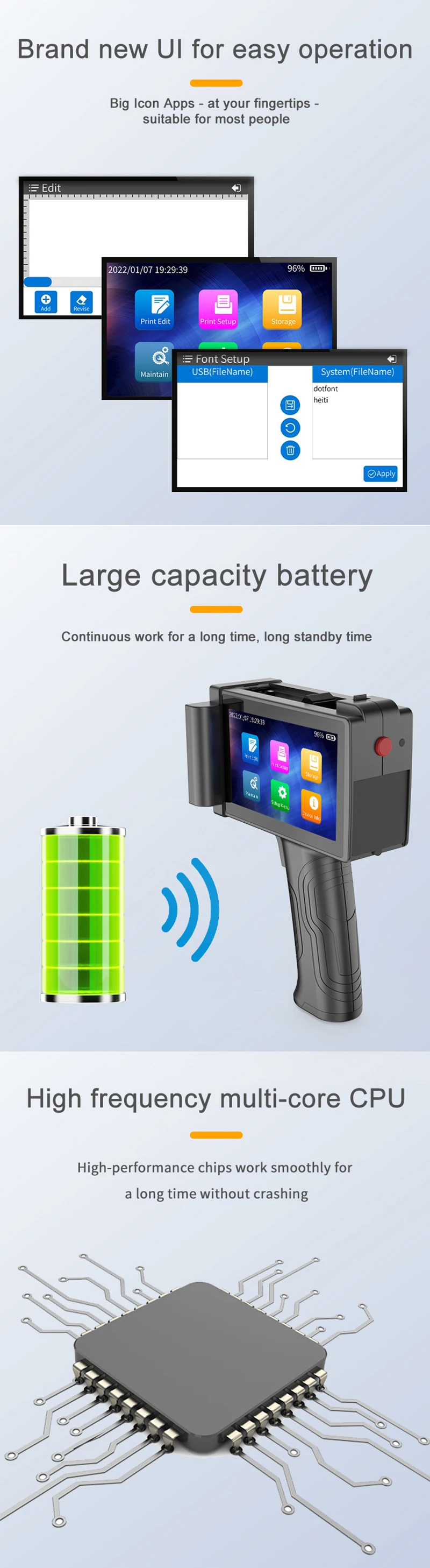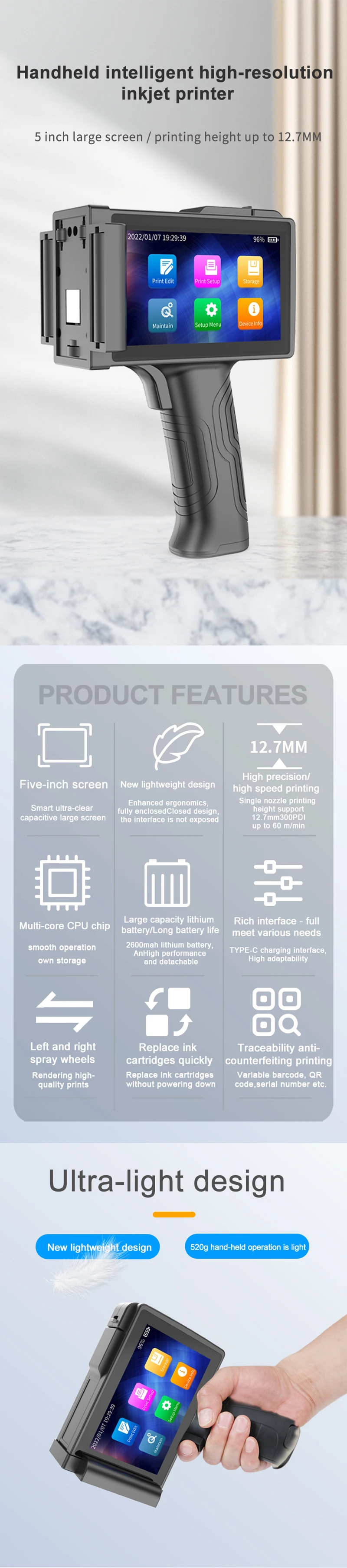 Automatic hand held printer high definition handheld inkjet printer Easy to Operate logo print machine CP4000 12.7MM