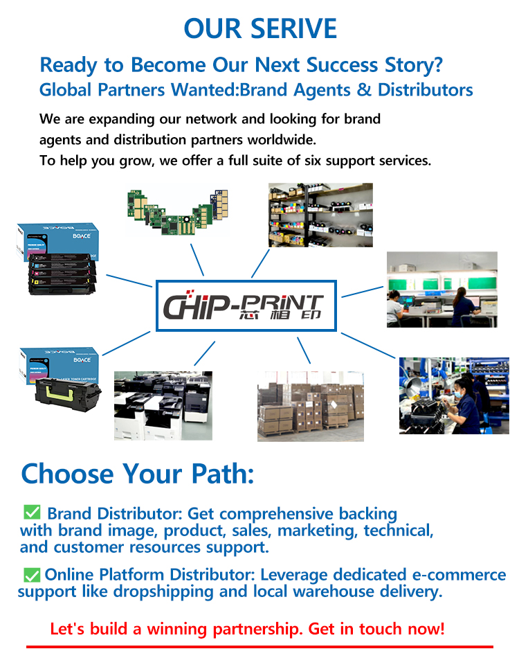 Shenzhen Chip-Print Technology CO.,Ltd has been engaged in the research, development and sales of compatible toner chips, drum chips, toner cartridges for HP/Canon/Samsung/Xerox/Brother/Dell/Lexmark/Kyocera/OKI/Epson/Konica Minolta/Sharp/Toshiba/Ricoh, etc since 2004.